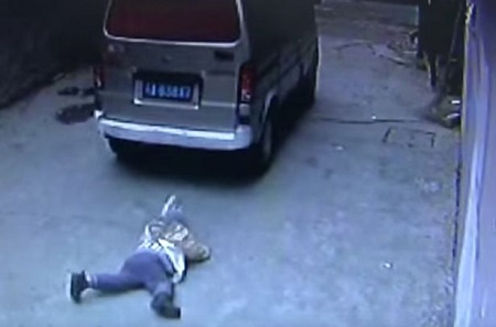 This is the horrific moment a little boy was ran over by a minivan as he was walking on the street. The horrifying incident caught on CCTV shows the boy stand up and walk away after the shocking ordeal.