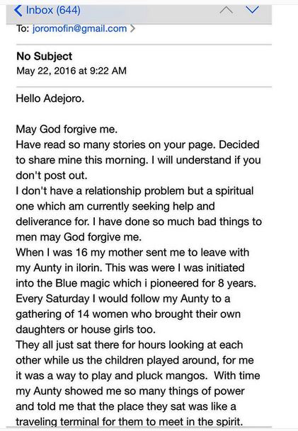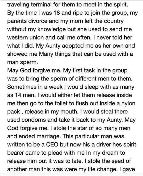 Joro Olumofin has shared the shocking story of a young lady based in Ilorin, Kwara state who was introduced to a spiritual circle by her anuty at the age of 18 and started collecting the sperm samples of men to destroy them